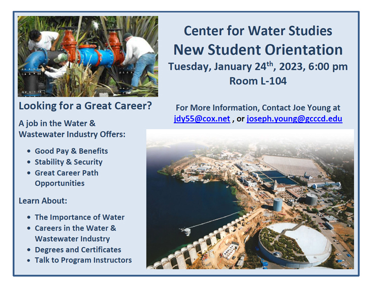 The Center for Water Studies will be hosting a New and Prospective Student Orientation